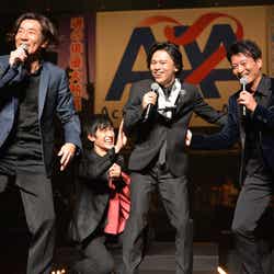 イベントは、三浦が「フレンズ」、岸谷が「シェリー」、寺脇が「大都会」の熱唱に失敗する…という演出からはじまり、歌にダンス、そしてコントを交えながらエンターテインメント性溢れるステージを展開。中盤、ミュージカル界を牽引する中川の言葉をきっかけに「ミュージカルコーナー」がスタート。「ジャージー・ボーイズ」「ラディアント・ベイビー」から名曲を次々と披露すると、「ロミオ&ジュリエット」では柚希、柿澤、平間、水田が「世界の王」を華やかにパフォーマンス。