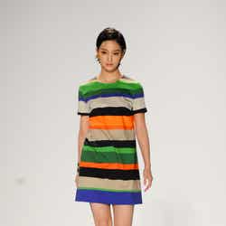 ショーのトップバッターとして登場した剛力はマルチボーダーのワンピースの着こなしを披露。BMGに合わせて優雅にランウェイを歩いた。