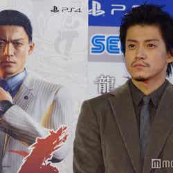 ゲーム中に、若き極道・染谷巧役で登場している小栗。声の出演だけでなく、小栗本人の顔を元に作成した3DCGのキャラクターとして登場しており「念願の『龍が如く』に出演できて非常に嬉しく思います」と感激し、「(主人公の)桐生一馬になって、自分のことをぶっ飛ばしたいと思います」と笑いを誘った。