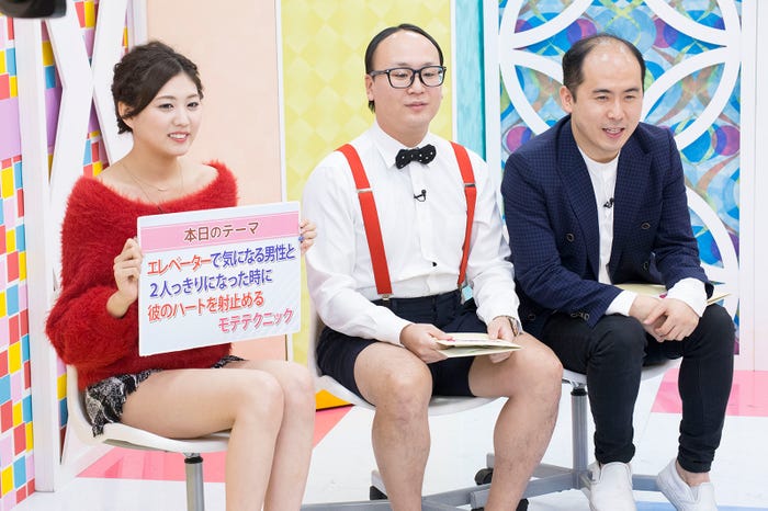 モテるためのテクニックを考える「モテる女研究所」のコーナーでは、「エレベーターで気になる男性と2人きりになった時に彼を落とすモテテク」を女子メンバーがそれぞれ提案。田森は、トレンディエンジェル・たかしを相手役に実演。いきなりたかしに迫り、両手で“壁ドン”しながら「ちょっと壁ドンしたくなっちゃった」とたかしの耳元でささやき。これにはたかしもノックアウトで、スタジオは大いに盛り上がった。