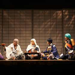 DMM GAMESが制作、ニトロプラスがキャラクター及びシナリオを担当したシミュレーションゲーム「刀剣乱舞-ONLINE-」が原作。名立たる刀剣が刀剣男士(とうけんだんし)と呼ばれる個性豊かな男性キャラクターとして登場、歴史上の戦場を駆けめぐりながら部隊を編成・育成していくコンテンツで、女性層を中心に支持を受け、全国に“刀剣ブーム”を巻き起こしている。その舞台版である今作は今年5月に東京・大阪にて上演され、公演は連日満員。千秋楽のライブビューイングは日本全国60館および台湾・香港の映画館でも上演し、平日開催にも関わらず4万人以上が観劇した。ゲネプロ:迫力の殺陣、笑える「軍議」も注目!