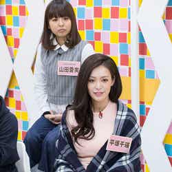 お色気たっぷりのグラビアアイドル・平塚千瑛は、関町の服についたホコリをとる素振りをしながら耳元に吐息を吹きかけるセクシーっぷり。大胆すぎる行動に、関町は「怖いわ」とツッコミを入れ、スタジオは爆笑に包まれた。