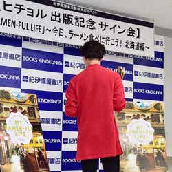 この日は約8000件の応募から抽選で選ばれた100人のファンがサイン会に参加。白い肌の際立つ真っ赤なニットに丸メガネをかけて登場したヒチョルは「昨日もラーメンを食べたので顔がむくんでしまいました。きれいに撮ってください(笑)」とカメラマンにお願い。「あなたのヒチョルがにっこにっこに~♪」とライブでは定番のあいさつで盛り上げた。本のページをめくりながら「韓国でも本を出したことがないので本当に嬉しいです。とにかく僕の顔が写っている写真は全部気に入っていますが、初日と2日目と3日目で僕の顔の大きさが(むくみで)どんどん変わっていきます。ラーメンをたくさん食べたので」とご満悦で出来栄えを紹介。「デビュー前から本を出すことに関心がありましたが、ラーメンの本の企画を出した理由は、本当に僕の好きなもので本を書きたいと思ったからです。母に翻訳をして届けてあげたい。息子が本を出したと聞いただけでも喜んでいました」と達成感をのぞかせ、「大勢の日本の皆さんに『ヒチョルは本当にラーメンが好きなんだな』と感じ取ってもらえれば嬉しいし、ファンの皆さんは僕のイケてるハンサムな顔がたくさん出ていますので、気楽に見ていただければ。本当に肩の力を抜いて気楽な気持ちで読めると思います。そんなに文字もたくさんあるわけではないので」とお茶目に見どころをアピールした。