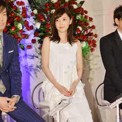 そんな中で三浦は「(倉科が)元彼(役の大谷)と抱き合っているのを見たら嫉妬しますね」とコメントし、大谷も倉科と三浦の共演シーンに嫉妬心を燃やすよう。水野も「昨日うちの旦那(役の大谷)と(倉科が)キスしてた」と会見でも“奪い愛”を繰り広げ、盛り上げた。