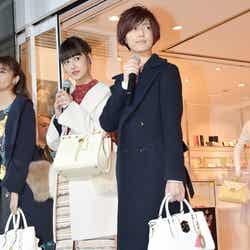 E-girlsの藤井萩花、藤井夏恋、楓、佐藤晴美が19日、東京・渋谷区神宮前にて行われたバッグ&アクセサリーブランドのオープニングセレモニーに登場した。