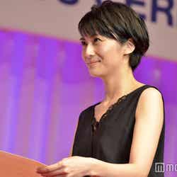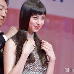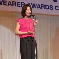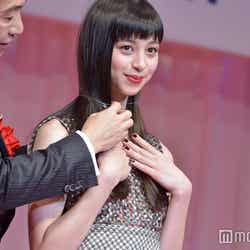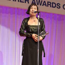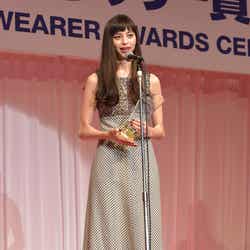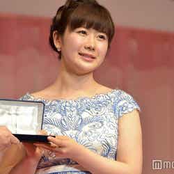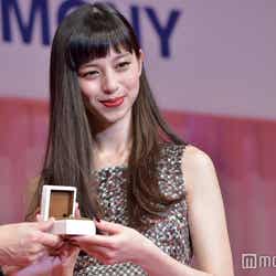 背中の開いたロングドレスで登場した中条は「すごい重いです。ありがとうございます」とトロフィーを手に笑顔を浮かべ、「来月ハタチになるんですけど、10代最後の年にこんな素敵な賞をいただけて本当に嬉しです。いただいた宝石のように、展示場で輝いていた素敵な宝石のように、いろいろな方に磨かれて、自分でも磨きをかけてキラキラと輝けるように頑張りたいです」と喜びのスピーチ。
