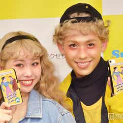原宿系人気読者モデルの“ぺこちゃん”ことオクヒラテツコと、夫でタレントのりゅうちぇるが26日、都内で揃ってスマートフォンケースのイベントに出席。2016年12月31日に結婚を発表して以来、2ショットで初の公の場に立った2人は、お互いの服を貸し借りするという日常について語った。