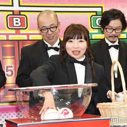 さらに、優勝したら結婚したいと言っていた横澤は、優勝賞金を手にした際の使い道を聞かれると「∞ホールという渋谷にある若手が出る舞台で、いっぱいネタを試させてもらっているんですけど、芸人が寝るときに渋谷一汚いんじゃないかという布を被って寝ているので、∞ホールにとてつもなくいい毛布をプレゼントしたい。そして“寄贈・横澤夏子”ってでかでかと書いて、私に永遠に有難味を受けれるような、そんな神さまみたいな人になりたいですね」と声を弾ませ、結婚資金は大丈夫かとの問いには「今、着々と溜めているので、妊活の資金にします」とコメント。また、同質問にブルゾンは「普段、シュッとした男2人(with B)を従えてネタをやっているんですけど、彼らにいい思いをさせてあげようかなと思います」と笑顔を見せた。