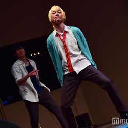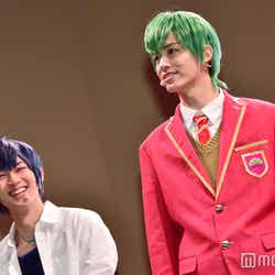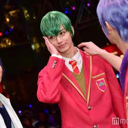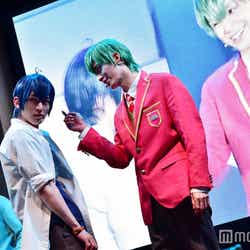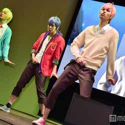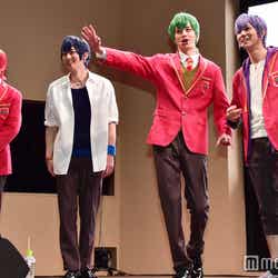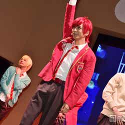 また役作りで苦労した点については、チョロ松役の小野が「いつも完璧だからないんだよね、そういうの」と役になりきってクールにコメント。トド松役の中山が「誰よりも可愛くなれるように頑張りました!」と話し、「可愛い!」の歓声が沸き起こると、キャスト陣からも「ピンクのウィッグに違和感がない」「そのまま現場来てもそういう人なんだって思う」と矢継ぎ早にお墨付きが入った。
