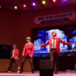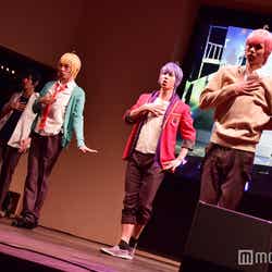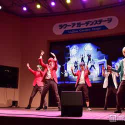 TVアニメ「おそ松さん」初となる舞台『おそ松さん on STAGE~SIX MEN’S SHOW TIME~』は大人になってもニート生活を謳歌する個性豊かな6つ子たちの1日を描き、昨年9月~10月にかけて東京と大阪で上演された。ライブでは劇中歌CD『おそ松さん on STAGE ~SIX MEN’S SONG TIME~』より「WAKE UP!~SIX MEN’S SHOW TIME!!!!!!~」、「聖なるかな匣智裡紙」(せいなるかなはこてぃっしゅ)、「Forever 6ock You」の3曲を披露した。