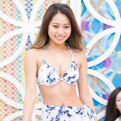 八鍬有紗はエスニック柄サッシュホルタービキニで登場。胸を包むサッシュホルターがバストをより美しく際立たせていた。