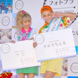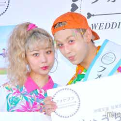 昨年末に結婚を発表した2人。この日、2人はイベント後に取材に応じ、結婚式の予定について「事務所次第!!まじでしたい…明日にでもしたい」と願望を示した。りゅうちぇるは結婚式の場所について「ちぇるちぇるランドもいいけど、外国もいいかなと思う…でも全然決められていない!」と話し、ぺこは「私は拘りが強い分、(準備を)やりだすのが怖い(笑)…こだわりすぎてめちぇくちゃやりだすので。妄想はあります」と語っていた。