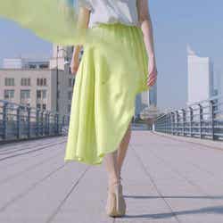 ふくらはぎや太ももの太さに悩みを持ち、脚の露出が目立つファッションを控える女性が多くいる中、CMでは、自信を取り戻し、脚の露出を楽しんで堂々と歩きだす姿を、脚を隠すために履いていたロングスカートの丈を一瞬で短く変化させる演出によって映し出している。