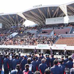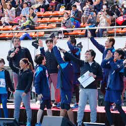 今回が、2回目となる「パラ駅伝」は、障がいのある方と健常者が一緒に1つのチームとなってゴールに向かってタスキをつなぐ駅伝。好天に恵まれた駒沢オリンピック公園の1周約2.5kmのコースを8区間9名(伴走者含む)で8周。14都県17チームが参加した。AAAの6人(伊藤千晃は欠席)は開会式に参加後、コースの沿道からスタートを見送った。レース中は、ステージにてトークを行い、浦田直也は「スタートを生で見させて頂いたのですが、すごいですね」と選手たちの迫力と熱気に圧倒された様子。