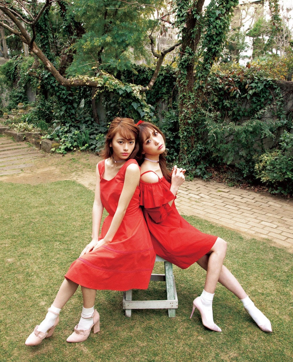 同企画は「甘めガールだってデニムを思いっきり楽しみたい!」をテーマに、フリル付きやレースアップ、花柄刺しゅうなど、ガーリーなデニムアイテムを紹介。松野さん、福原、そして加藤ナナ、永尾まりやの4人が、カジュアルになりがちなデニムアイテムを、幅広いアイテムやスタイリングで、ガーリーに着こなした。