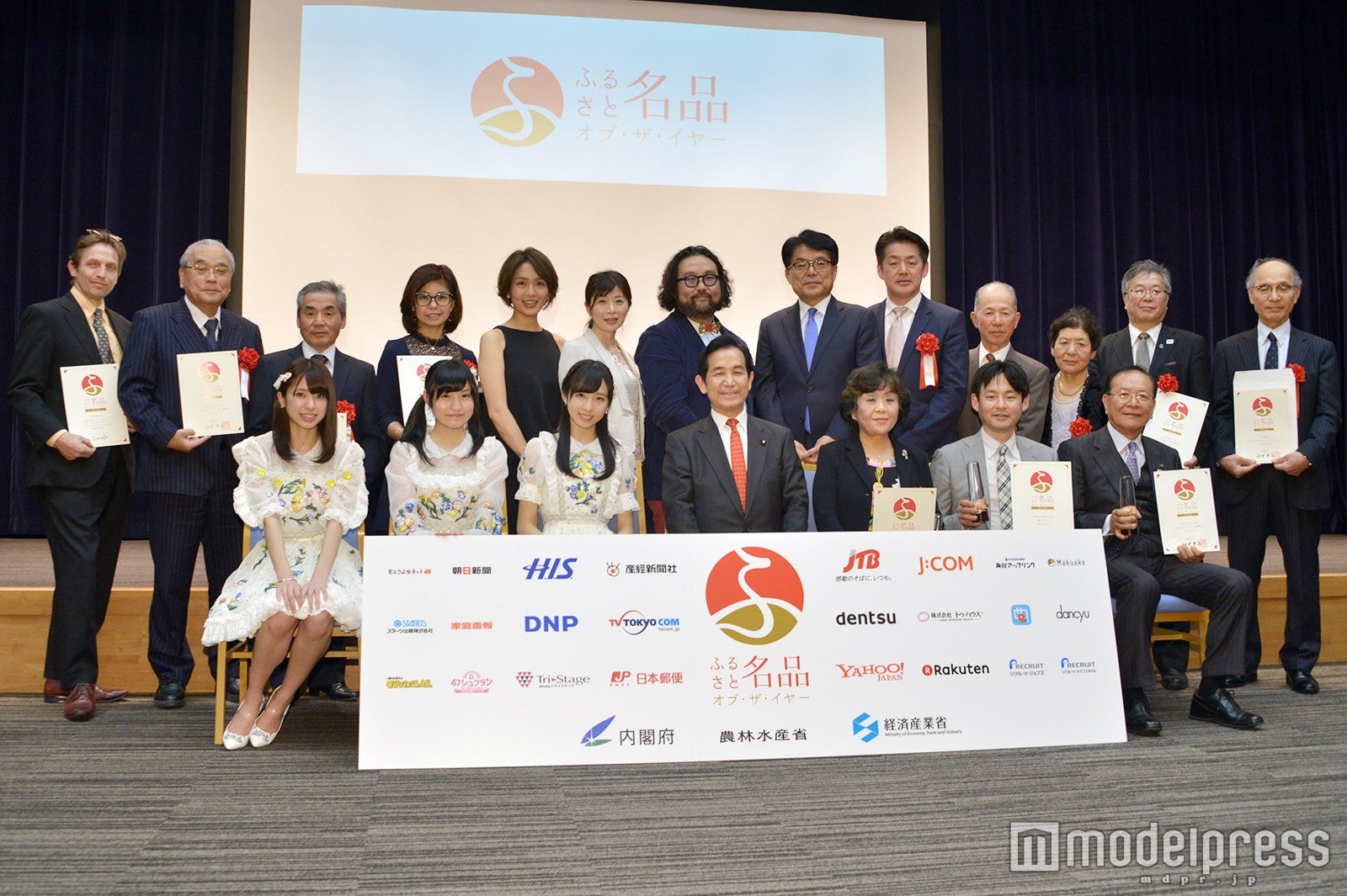 同賞は、地域の素晴らしさを域外の消費者に直接伝えようとする新たなチャレンジを、より多くの人に知ってもらうことを目的とした表彰制度。表彰式では「地方創生賞」3名品と、新たに創設された「政策奨励賞」を表彰。地方創生大賞・ヒト部門に、三重県桑名市の「『KUHANA!』映画部」、モノ部門に奈良県五條市の商品、コト部門に東京都立川市の商品が選ばれたため、各都県代表の3人が登壇し、祝福のコメントを送った。ゲストのチーム8のほか、最終審査員を務めた山本幸三地方創生担当大臣、古田秘馬実行委員長、増田寛也さん(野村総合研究所顧問)、富永美樹(フリーアナウンサー)、和田明日香(モデル・食育インストラクター)が出席した。(modelpress編集部)