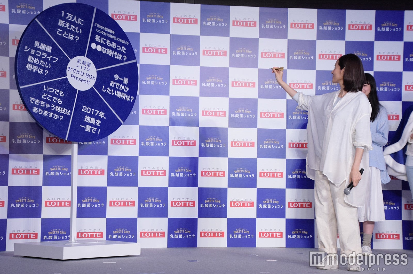 イベントではルーレットが用意され、ダーツで当てた項目をトークするという企画も。「1万人に訴えたいことは?」というテーマにヒットした吉田は、「みなさんはテレビや映画で小松菜奈ちゃんを『かわいい』と感じていると思いますが、実際に見てもとってもかわいいです。大好きです!」とカメラの前で告白。小松も照れながらもうれしそうに微笑んでいた。会場には、キャンペーンのアンバサダーに就任した前田典子、東尾理子、金子貴俊も登壇。吉田と小松からブルーのマントを贈呈されたほか、新キャンペーンのキックオフを記念して5人でのテープカットが行われた。(modelpress編集部)