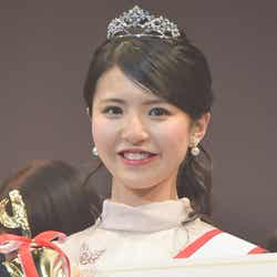 グランプリに輝いた松田さんは「まさか選んでいただけるとは思っていなかったのですごくビックリ。家族や応援してくれた方のおかげでここに立てています」と、5000万円相当のティアラを輝かせ、喜びいっぱい。先輩にあたる山賀は、「本当にお綺麗です。輝いてます」と松田さんの印象を語り、「こんな素晴らしいティアラ、私の時あったかな」と報道陣を笑わせた。
