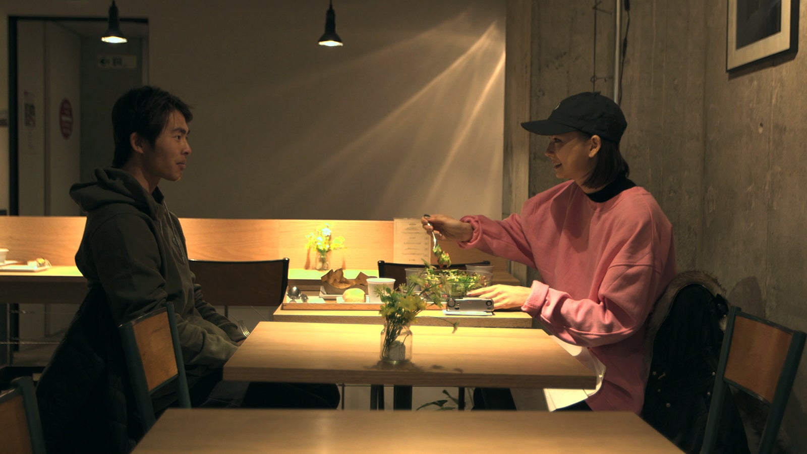 そして、検査を終えたプロサーファーの佐藤魁(さとう・がい/20)が帰国。仁希は大学が春休みの2ヵ月の間の限定入居ということを知ると、「このまま寝るつもりだったけど今日1日寝ないでいようかな」と仲を深めようとポツリ。大志から「(仁希と)2人でランチ行けば?」と提案を受け、2人はランチを楽しむ。同い年の魁に仁希もほかのメンバーといるときよりもリラックスした様子。オシャレなレストランで仁希に財布を出させない大志と、何でもないドライブインでそれぞれ好きなものを頼み気を遣わせなかった魁。対照的なランチとなった。