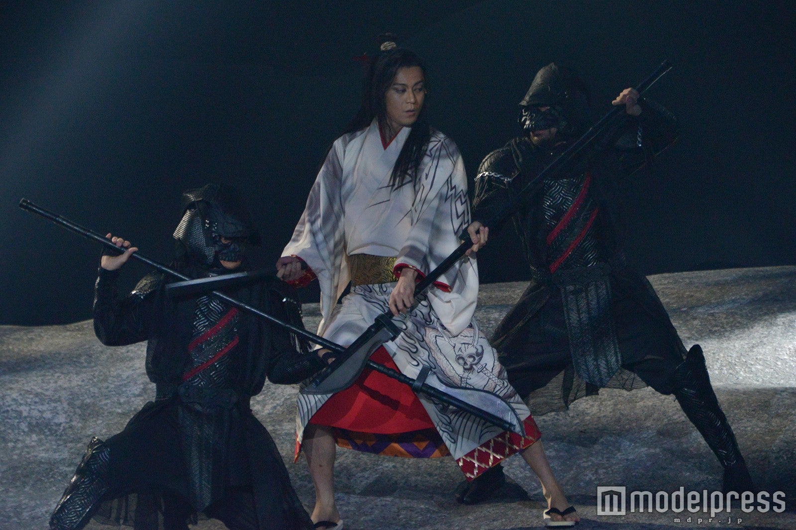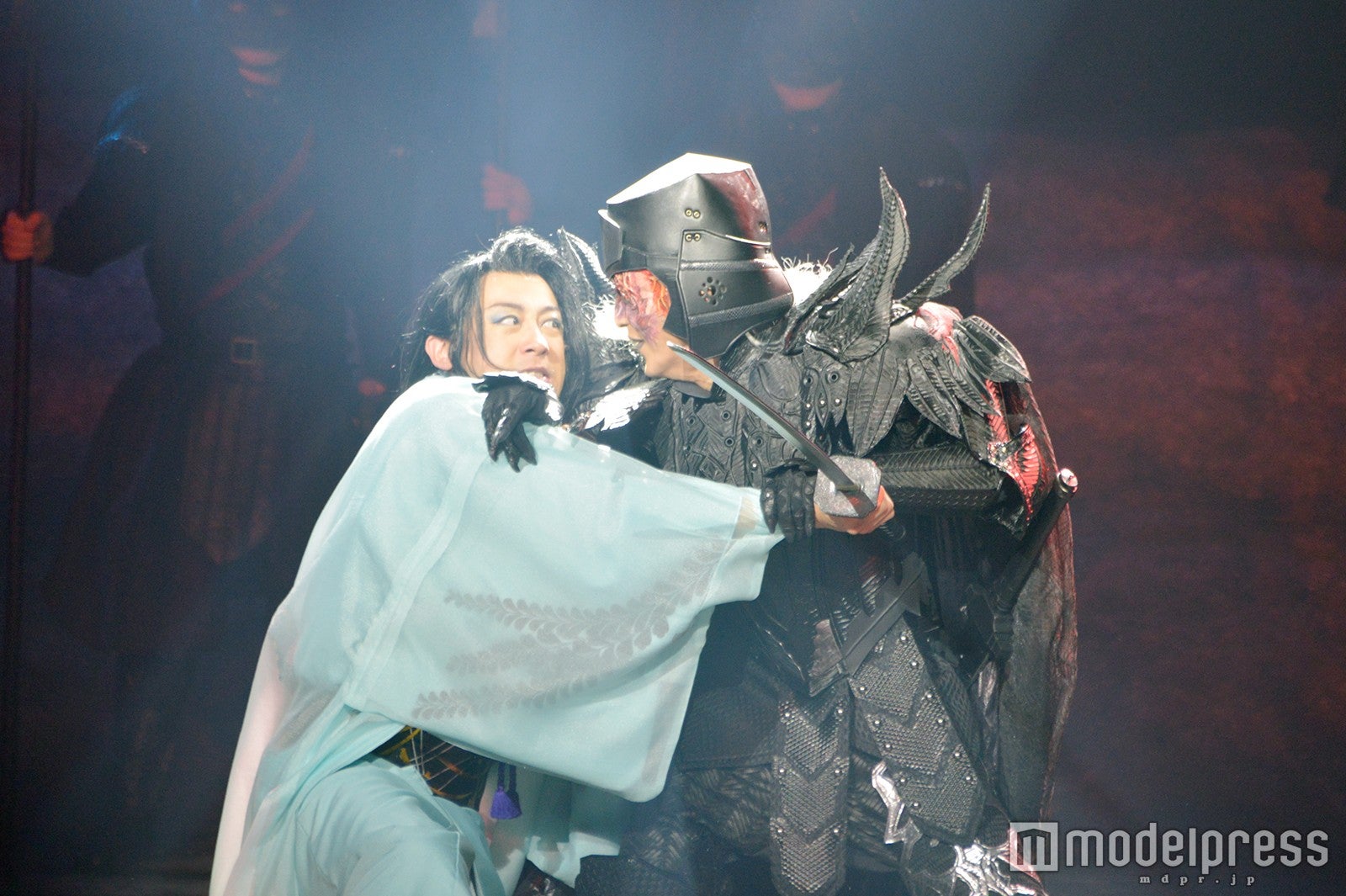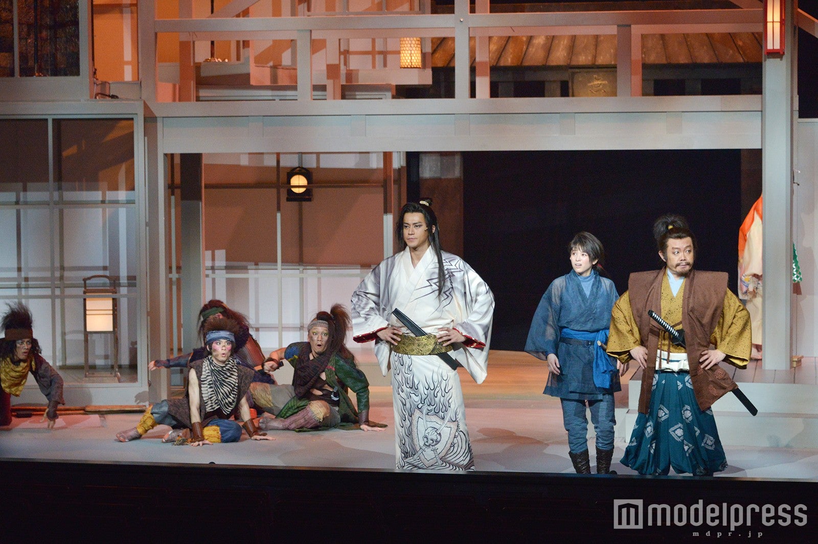 そんな新感覚の劇場にて、この日は40分にも渡るプレスコールを実施。小栗は剣の腕がたつ無頼派のヒーロー“捨之介”を演じる。そこでも、見事な剣さばきで迫力のある演技を披露した。この日の18時30分をもって公演がスタートする小栗は「なかなか大変な舞台なので、ケガをしないように気を付けたいと思います」と意気込み。実際に劇場を体感して「とにかく大きすぎて、大変な劇場ですね」と感想を述べ、「お客様は絶対に楽しめると思うので、期待を裏切らないように頑張ります」とファンにメッセージを送った。
