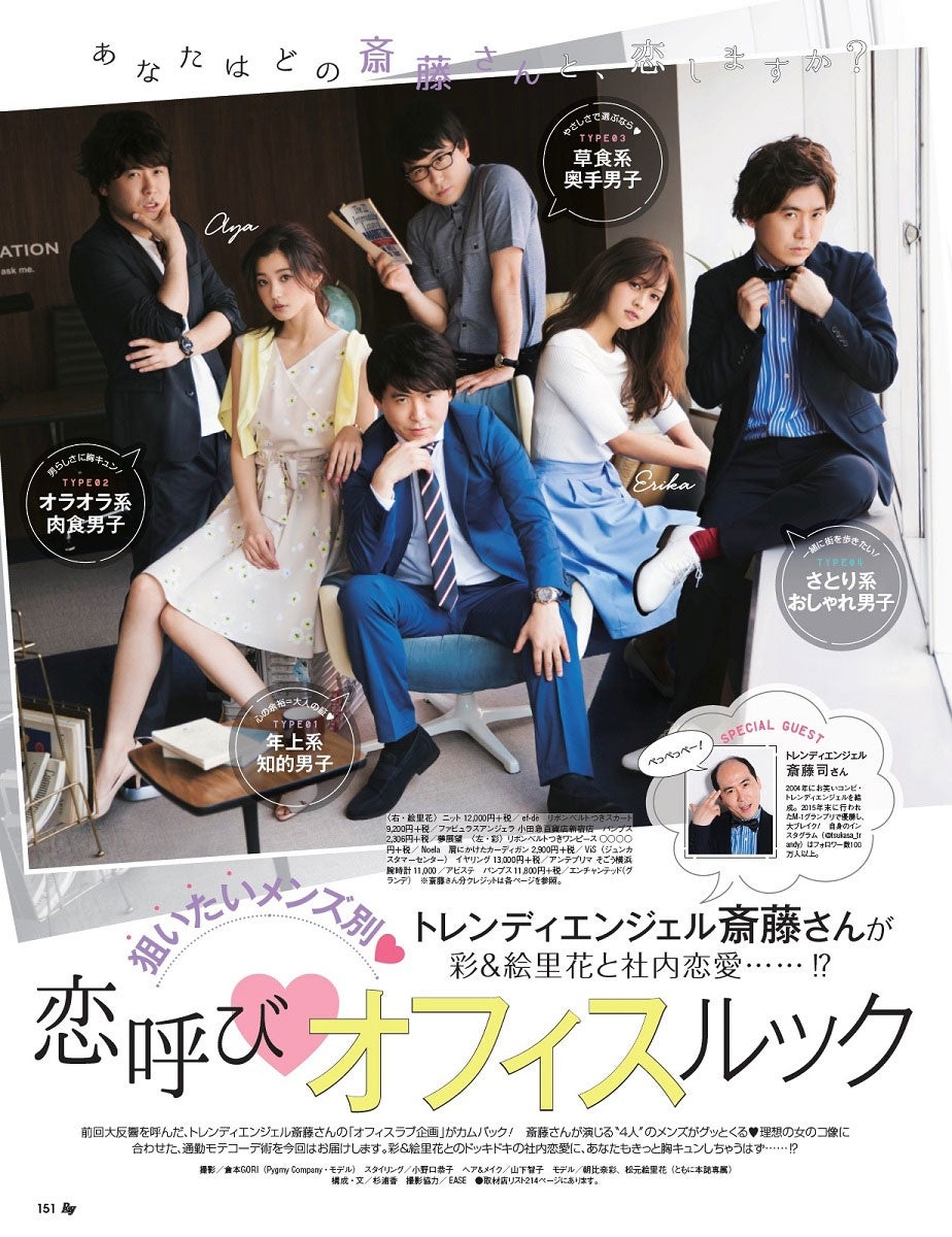 そして、トレンディエンジェル斎藤司の「オフィスラブ企画」が反響に応えてカムバック。朝比奈彩と松元絵里花が、斎藤演じる「年上系知的男子」「オラオラ系肉食男子」「草食系奥手男子」「さとり系おしゃれ男子」4タイプのメンズを攻略するための通勤モテコーデを着こなす。(modelpress編集部)