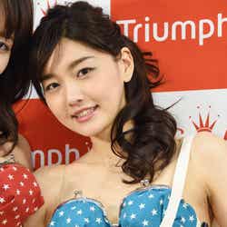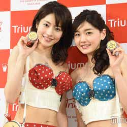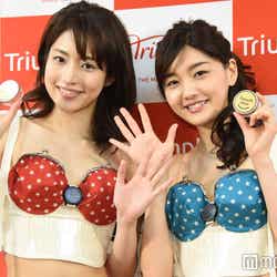 同ブラを身に着けた感想を、松山は「『がまぐちブラカップ』が胸を包み込んでくれ、3時になって消灯すると『PREMIUM FRIDAY』の文字が浮かび上がってきますので、3時を楽しみに待つことができます」とコメント。一方、静は「これから温かくなるので海などに行きたい気分になります」と笑顔をみせ、「(3時以降に)英会話など今までできなかったことに挑戦してみたいなと思います」と語った。(modelpress編集部)