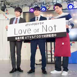 三代目J Soul Brothers from EXILE TRIBEの山下健二郎、劇団EXILEの町田啓太、八木将康が2日、都内にて行われたドラマ「Love or Not」(dTV&FODで同時配信/毎週月曜0時更新)スペシャルファンイベントに出席した。
