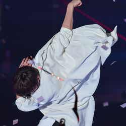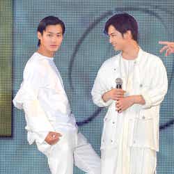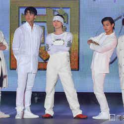 この日、作品の舞台となる「海帝高校」生徒を演じるメイン6人のうち志尊淳が残念ながら不在。今作の現場では千葉と志尊の“新旧・かわいいポジション争い”があり、年上の千葉が“じじい”といじられるのがお決まりとなったが、この日も客席には「じじい」と書かれたプラカードが見受けられた。千葉はステージ上の巨大スクリーンにアップで映るたびに“プク顔”やウィンクを決め込み、“かわいい”を独占。菅田が「今日は志尊がいないんですけど…」と切り出し、間宮も「志尊淳がね…。めちゃめちゃ可愛い子がいないんですよ」と寂しそうにつぶやくなど、『帝一』のメンバーの絆を垣間見ることができた。