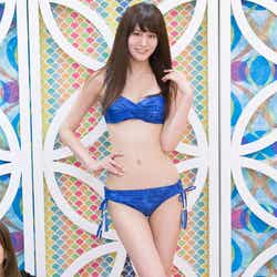 「今どき女子の大人カワイイ水着」のテーマでは、トップバッターで登場した沖舘唯がペイズリー柄ワイヤーホルタ―ビキニを着こなし。サイドがねじれたショーツもセクシーさを際立たせていた。続く薄井美樹は、黒の無地ビスチェ&ハイウエストショーツでウォーキング。シンプルながらバックスタイルがレースアップされて色気もたっぷり。今年トレンドのスタイルを着こなし魅了した。