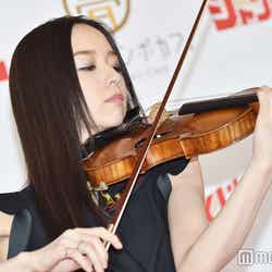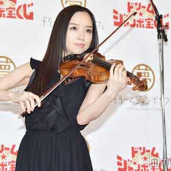 世界最高峰のバイオリンと称される約7億円の“ストラディバリウス”や、7億円のジュエリー、高級スポーツカー“マクラーレン”などの超高級商品を鑑賞できるカフェにちなみ、イベントでは島崎が煌びやかなドレスと、総額7億円のジュエリー(ティアラ、ネックレス、イヤリング)を身にまとって登場し、そんな島崎を霊長類最強の警備員として吉田選手が完全警護。さらに宮本が“ストラディバリウス”の生演奏を披露した。