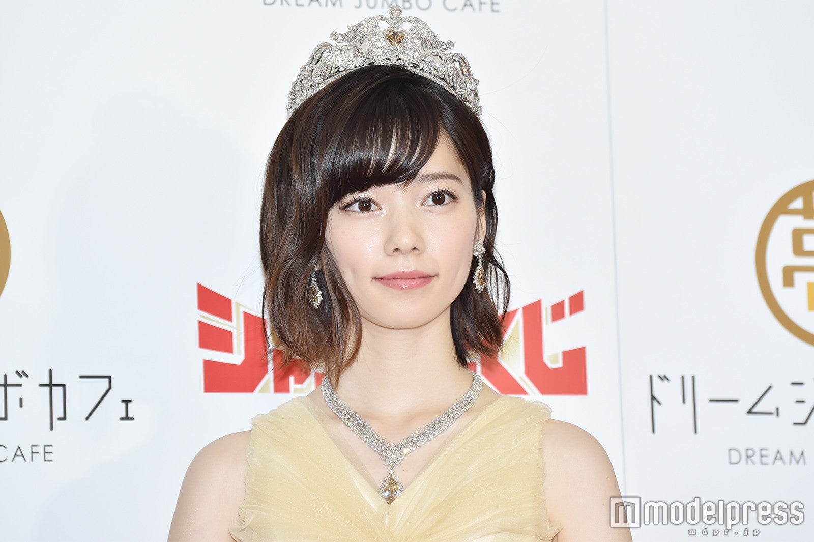 総額7億円のティアラセットを身に着けた感想を尋ねられると「最初に着けた感覚は“重い”で、まだ自分から見て馴染んでいないので、年を重ねていくうちに、このアクセサリーが似合うような女性になれたらいいなという夢も抱きました」とコメント。同ジュエリーをつけてどこに行きたいかと質問されると「怖くてどこにも行けない(笑)」と声を震わせた。