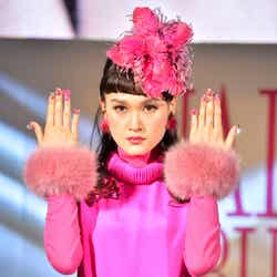 ピンクというキーカラーで統一されながらも、それぞれに個性を放つ作品をファッションやヘアメイクと共にコーディネートして現れたモデルたち。ショーの後、ゲストモデルとして南が姿を見せた。