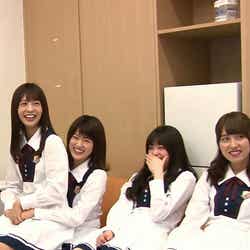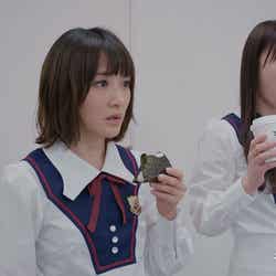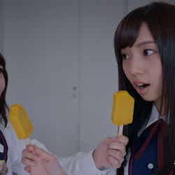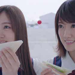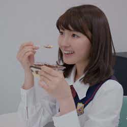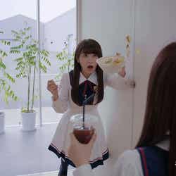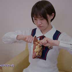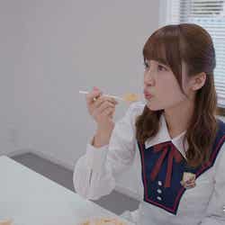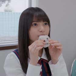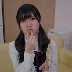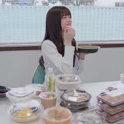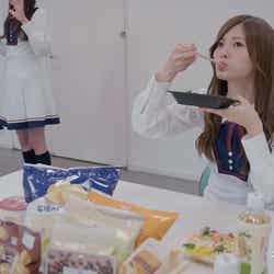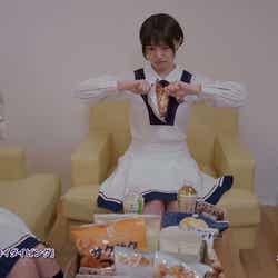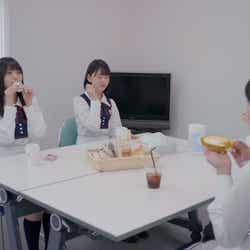 秋元がラーメンをこぼして驚いているシーンや、樋口と星野がサンドイッチを食べながら2ショットを自撮りしている姿、無邪気に食事を頬張る“食べ石さん”こと白石、箸を見つめる若月、1人だけ弁当の量が異常に多い松村など、マネキンのように固まりながらもメンバーの個性が伝わる。