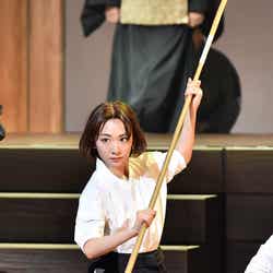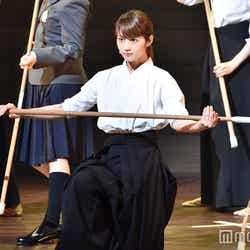この日行われた公開稽古では、初となる薙刀を披露。薙刀とは女性の武道とも言われ、美しさやしなやかさが見どころ。普段のアイドル姿からは一変、舞台上では大声を張り上げ果敢に薙刀に取り組む姿が見られた。