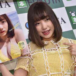 周りの反応を聞かれると、「アイドルで1番仲がいいエビ中(私立恵比寿中学)の廣田あいかさんに1番に写真集を渡せました。あいかちゃんはめちゃめちゃ応援してくれていたのですごく喜んでいて、好きなカットを聞いて1時間くらい2人で見ていました(笑)」と明かし、さらに「お母さんは『90点だね』って言っていました。『次もできたらいいから、100点はまた次に』って言っていました」とニッコリ。自己採点を求められると「自分でも90点くらいかな。100点をあげたいですけど、次もまたやりたいので」と目を輝かせ、次はどんなシチュエーションで撮影をしたいか質問されると「今回は素中の素だったので、もうちょっと大人っぽい写真集ですかね」と声を弾ませた。また、今回の写真集出版を機に、“プロフェッショナル・ロリ巨乳”というキャッチコピーが与えられたことについての心境を尋ねられると「私、プロになったんだなって思いました(笑)。そういう名が付いたということはもうプロなので、極めていきたいなと思っております。プロ中のプロを目指していきたいと思います」と意気込んだ。さらに、何歳まで“ロリ巨乳”で行きたいか聞かれると「18歳で大人だと思っているので、次はロリ巨乳ではない新しい名を。おっぱいの神様に愛されていると思っているので、違う名ができるんじゃないかと思っています」と語った。(modelpress編集部)