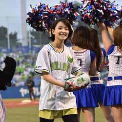 女優の剛力彩芽が13日、明治神宮野球場で行われた「東京ヤクルトスワローズ VS 東北楽天ゴールデンイーグルス」の始球式に登場した。