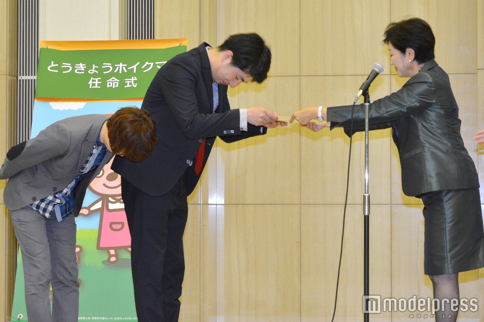 寺内は「とうきょうホイクマンに任命されましたので、待機児童の問題や保育士の育成・確保・定着を目指していろいろなPRをできたらと思います」と意気込み、昨晩考えたという“とうきょうホイクマン”ポーズも披露した。