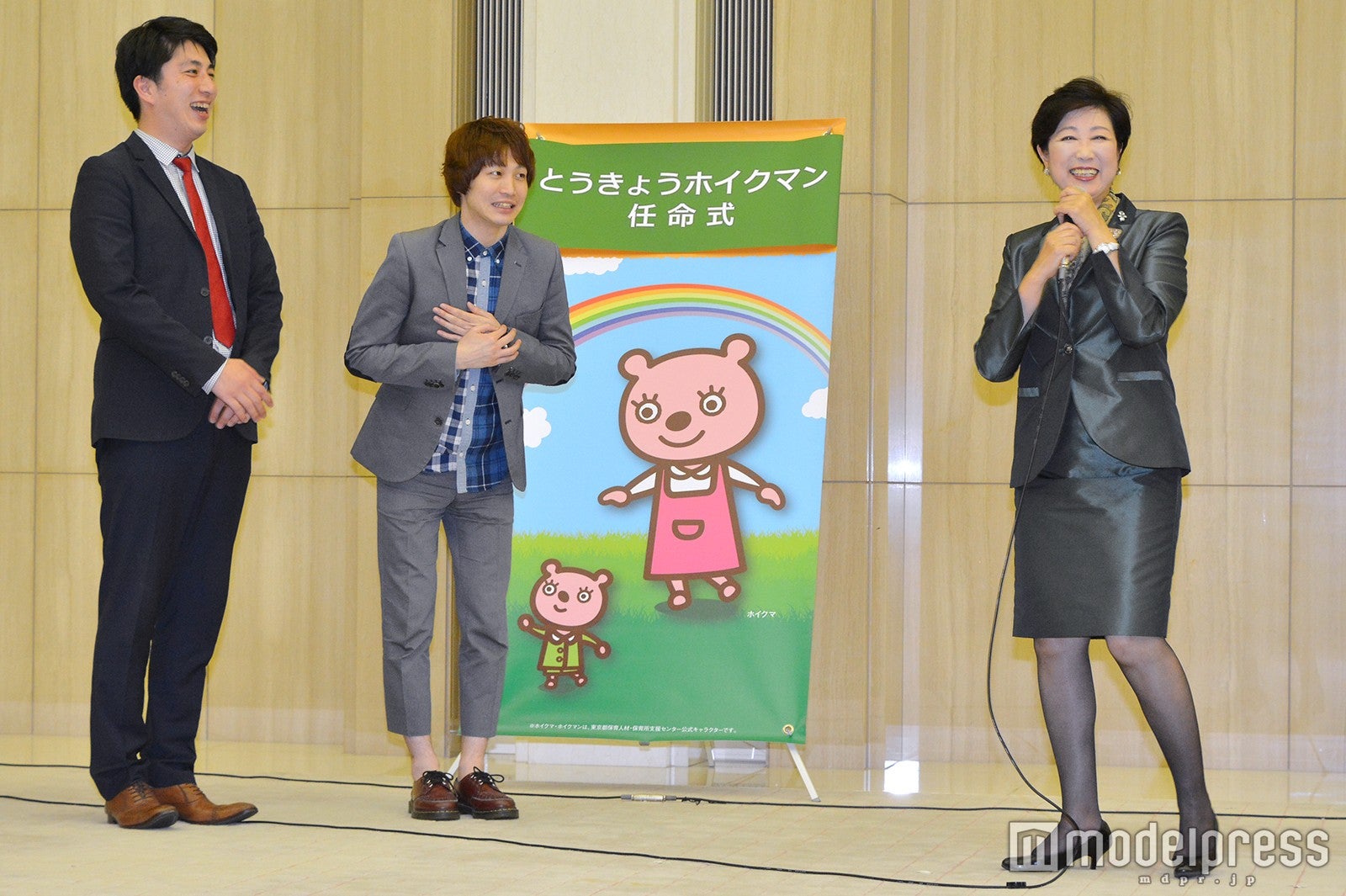 また任命式では小池都知事が、ランパンプスに合わせてお笑いのノリを連発。“任命状”を“逮捕状”と読むボケをしたり、ランパンプスへマイクフォローをした際は「マイクスタンドよ」と冗談を飛ばし、会場を沸かす。さらに「一応、私も関西系なので(笑)」とお笑いへの造詣が深いこともアピール。しかし小池都知事の退出後に寺内は「関西とおっしゃてくれたんですが、ぼくら千葉と北海道出身なので…」と正直に明かし、関係者の笑いを誘っていた。(modelpress編集部)