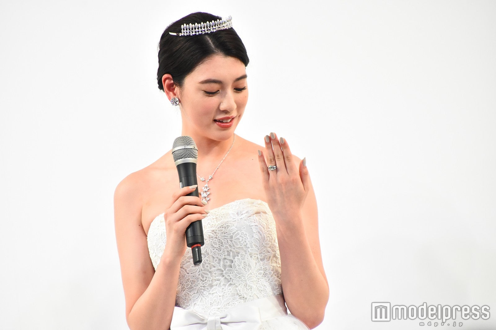 結婚観について聞かれると「素敵な人が現れてくれたらいい。けど、そんなに早くない気がしています。お仕事も楽しいので。30歳前後を目安に」と告白。出産願望もあるようで「子どもが自慢してくれるようなお母さんになりたい」と語った。理想の結婚式は「当分先だと思うけど、産んでくれた両親やお仕事でお世話になっている方、お友だちを招いて楽しんでもらえる式になったらいい」といい、憧れという純白のドレスも「とても大切に一着を選びたい。ふんわりドレスもステキだと思いつつ、身長も高いのでマーメイドドレスも憧れる。悩んでいる時間も楽しい」とほほ笑んだ。