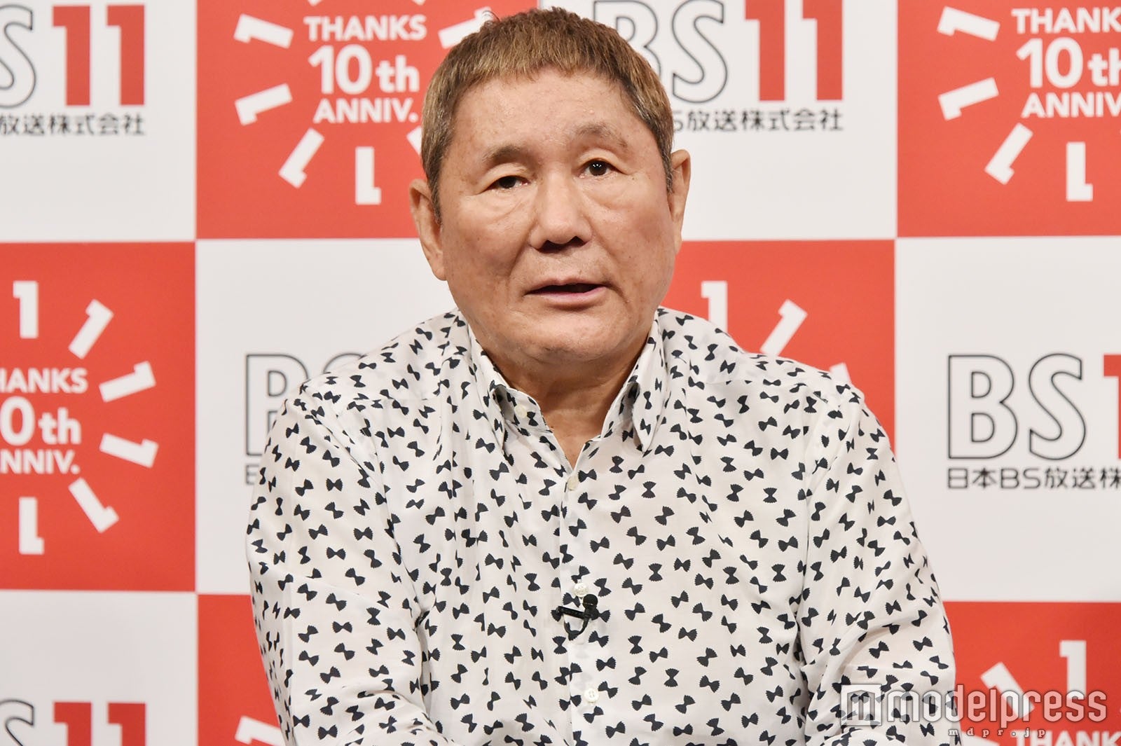 タレントのビートたけしとベッキーが、都内スタジオでMCを務めるBS11「たけしの北野レガシー」(7月15日午後8:00)の取材会に参加した。