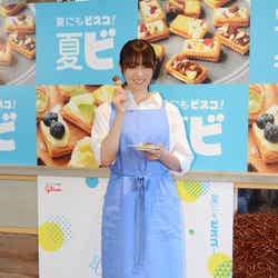 この日は爽やかな白シャツと水色のエプロンを身にまとったカフェ店員に扮したほか、CMで着用している真っ白なワンピース姿でも登場した深田。夏らしく、そして華やかなスタイルで美脚も披露し、報道陣を魅了していた。