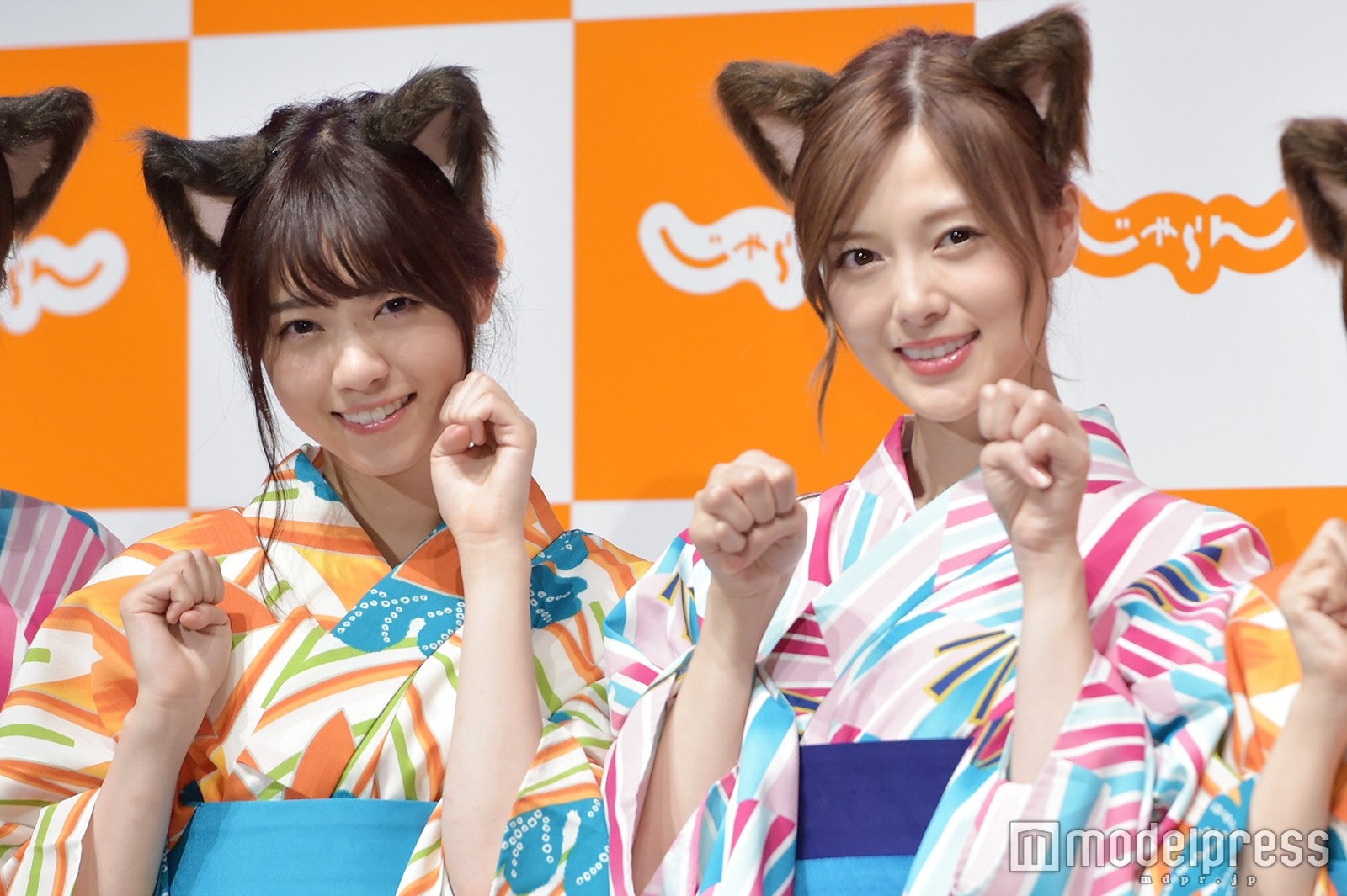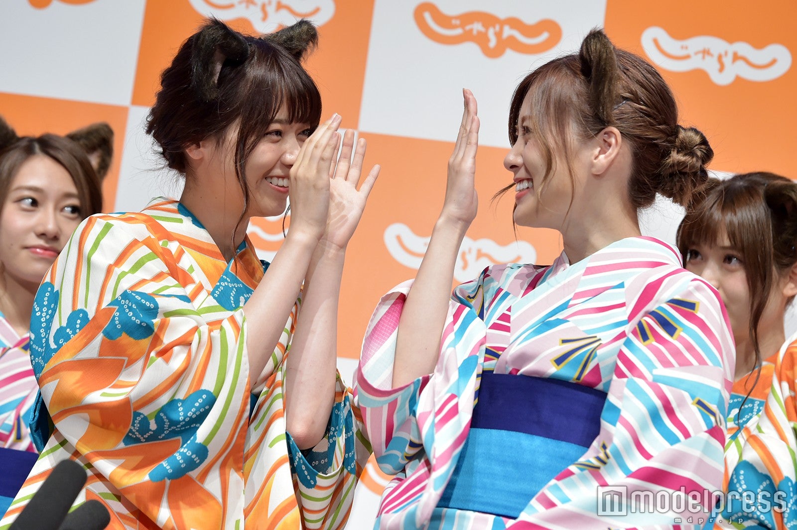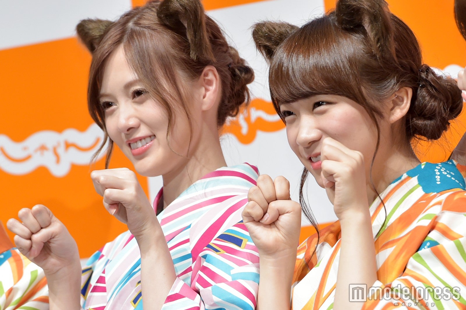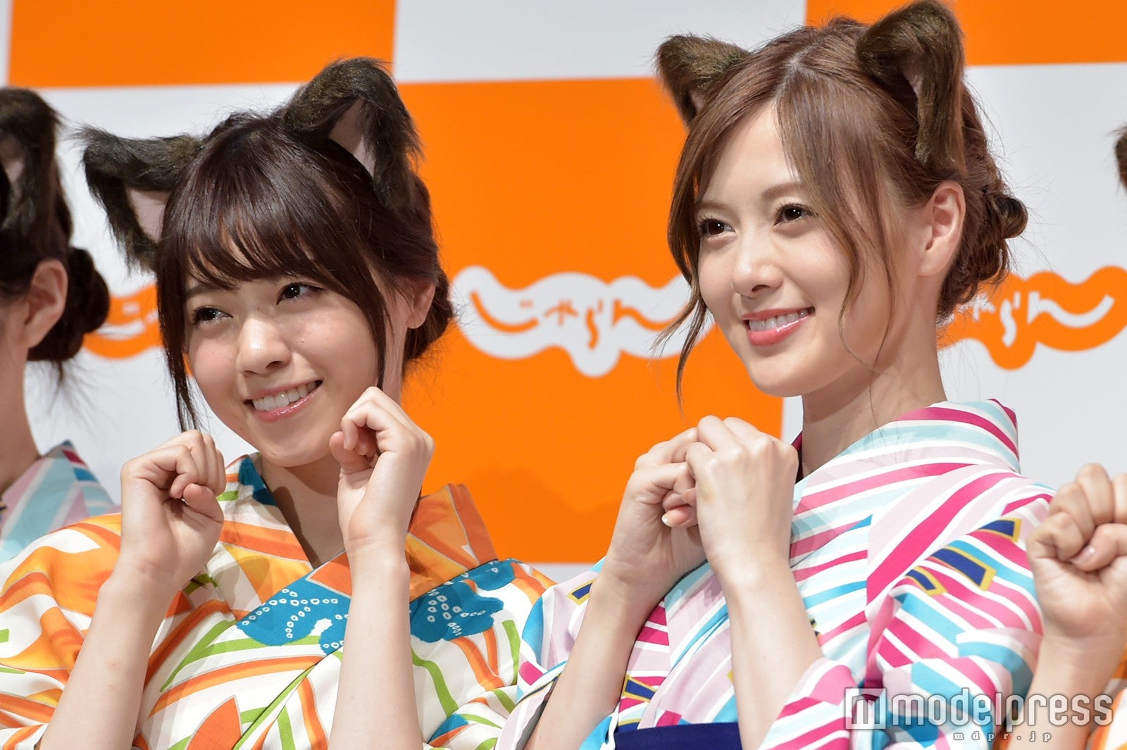 今年の夏の予定を聞かれた白石は「具体的に夏休みはないかもしれないですけど、夏のツアーでみんなと一緒にいろいろ地方を回って美味しいものを食べるので楽しみです」とにっこり。秋元は山形県の銀山温泉が気になっているようで「もし休みができたら行ってみたいです」と明かすと、報道陣から「アイドルって温泉に入っている時に声をかけられたら大変ですね」と質問され…。「そういう時はちょっと変顔するんです」と目を細めはじめ「目をこんくらいの感じにして。それで前髪を分けちゃえば誰かわからない」と場を笑わせていた。