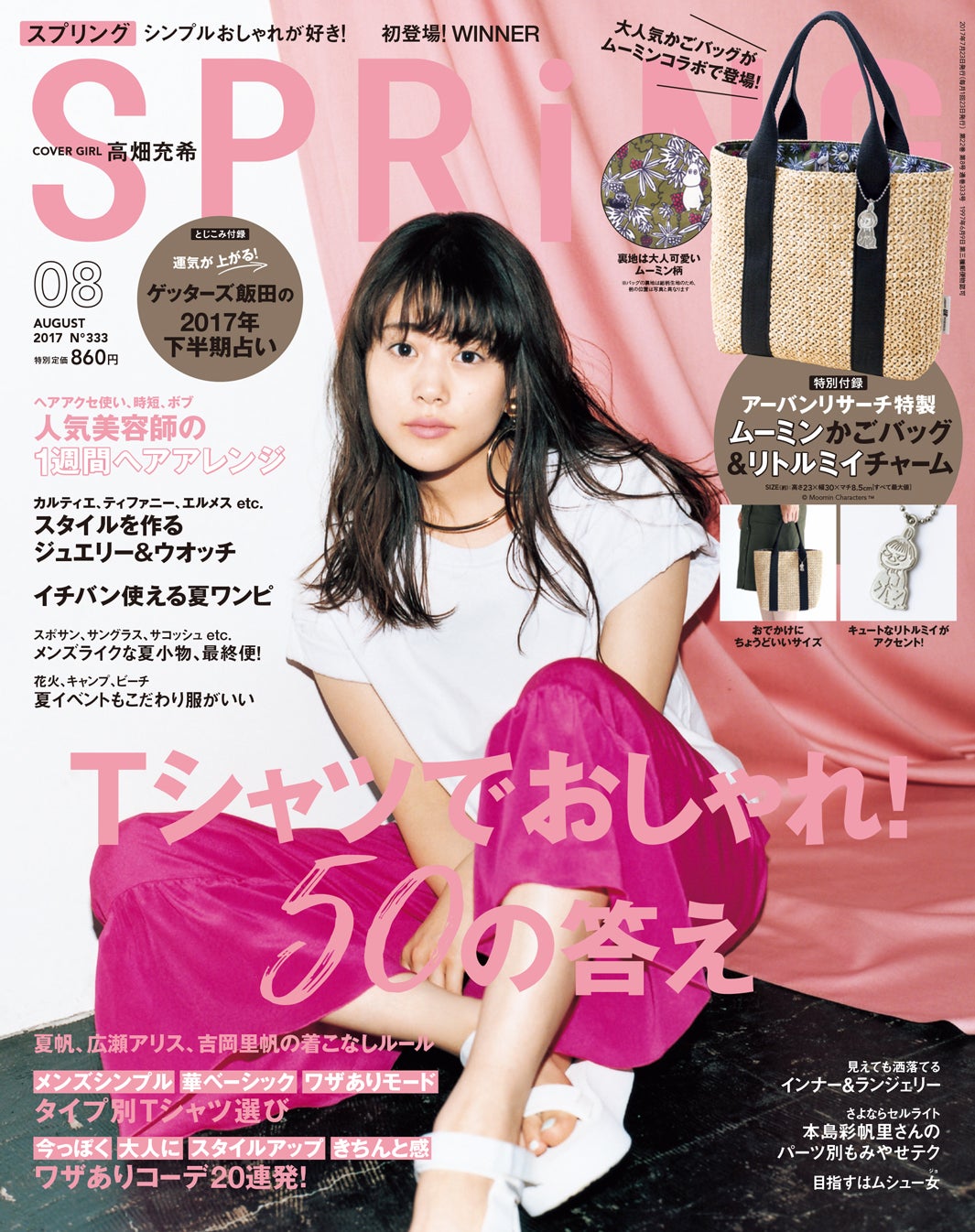女優の吉岡里帆が雑誌「SPRiNG」8月号にて同誌に初登場。夏のTシャツコーデを披露した。