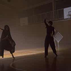 真っ暗な体育館にスポットライトが数か所しかない、薄暗い雰囲気のなか撮影がスタート。細かくスタッフと確認し、一つ一つの振付に意味があることを理解しながら踊っていった。