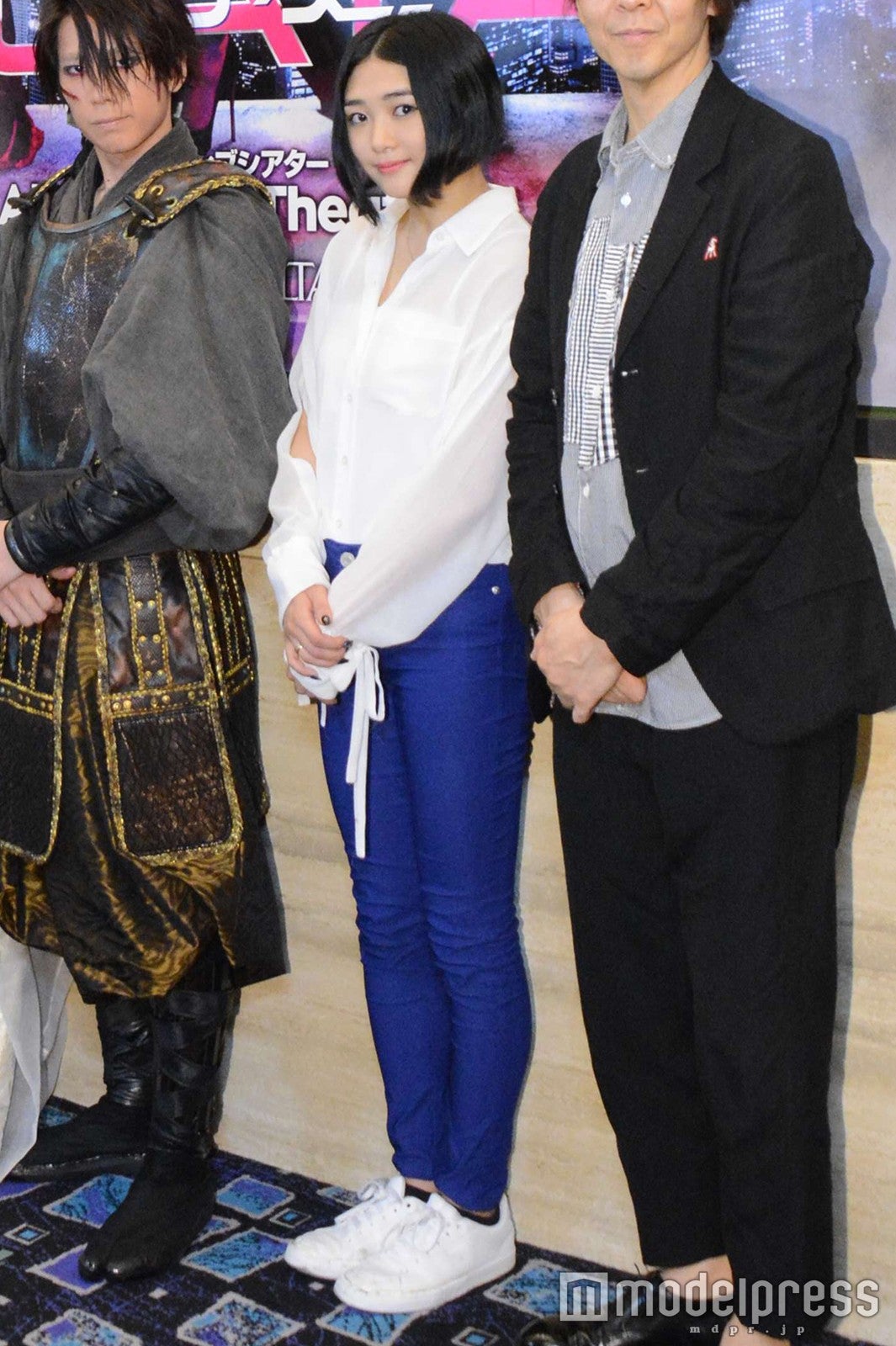 LDH所属のElina(水野絵梨奈)が6日、東京・有楽町に7月7日に開業する「オルタナティブシアター」のこけら落とし公演「アラタ~ALATA~」の公開ゲネプロに、早乙女友貴(サムライアクション・ディレクター)、横内謙介(構成)、岡村俊一(演出)、吉田美佳子(女優)と出席した。