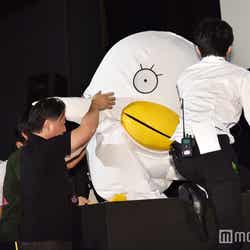 キャストが登場し、トークが行われていた終盤、エリザベスの横にいた福田監督がエリザベスに声をかけると一言「あつい…断ればよかった…」とコメント。そこで会場は“声”にざわつき、山田と頻繁に共演するムロツヨシも「聞き慣れた声…」と疑問を浮かべていた。