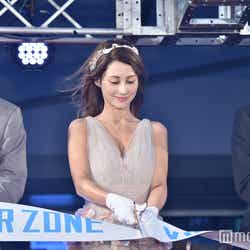 モデルのダレノガレ明美が14日、都内で行われたイベントに、お笑いコンビ・ウーマンラッシュアワーの村本大輔、中川パラダイスとともに出席した。