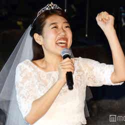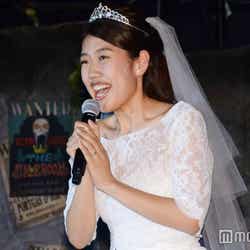 念願の“誕生日婚”が叶い、20日の27歳の誕生日にかねてより交際していた1つ年上の会社員男性と入籍した横澤は、純白のウェディングドレス姿で登場。「すいませ~ん」と恐縮しながらも、ハッピーオーラ全開で左手薬指には結婚指輪をはめて現れると、「このようなウェディングドレスを着させていただき嬉しく思います。ありがとうございます」と感謝。結婚して1日しか経っていないが、「(新婚生活を)満喫しております」とにやけると、「ニコニコニッコリ」な家庭を築きたいと宣言した。そして、「まだ(旦那に)相談してない」としながらも「新婚旅行はモルディブに行きたい」と目を輝かせた。