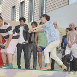 同イベントでは同局の人気番組や映画をテーマとしたブースやステージイベントを展開。この日のステージでも芸人たちがそれらをアピールし、新人アナウンサーの二人に“ケツバット”を促すという無茶振りも。緊張しつつも芸人たちにケツバットを浴びせた二人だが、滝アナは先輩らしく二人よりも激しくバットでお尻を叩き、フルスイング。小気味よい音で会場を沸かせた。(modelpress編集部)