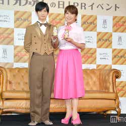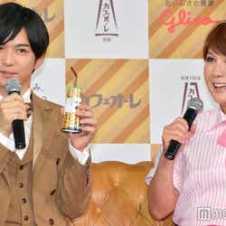 俳優の千葉雄大とタレントのはるな愛が27日、都内で行われた飲料のイベントに出席した。